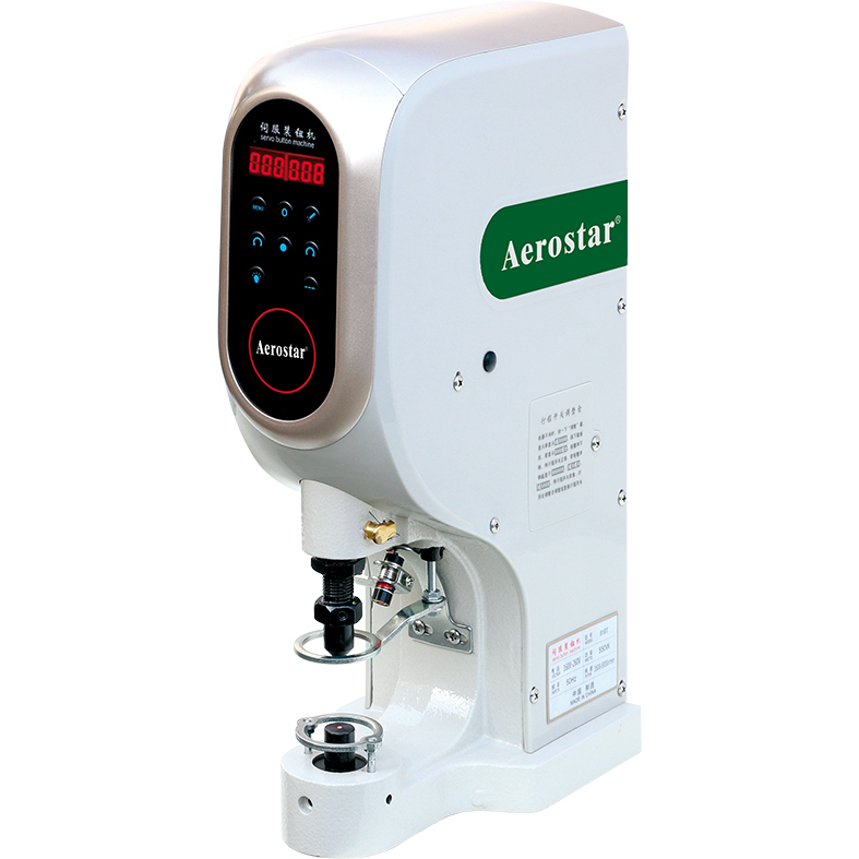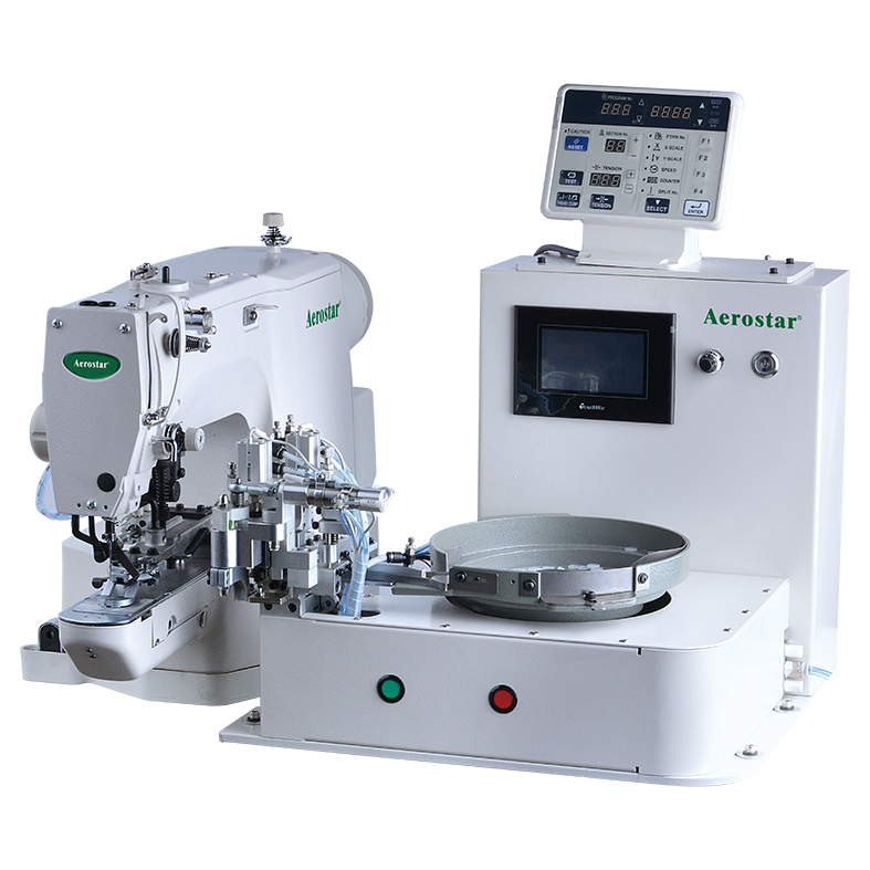 Automatic button attaching machine. Working speed 40-45 per minute. Rate of finished products 99.9%. Laser location. Application : suitable for industry garments , cases and bags, leather material ,blet shoes and art work.