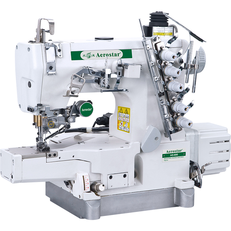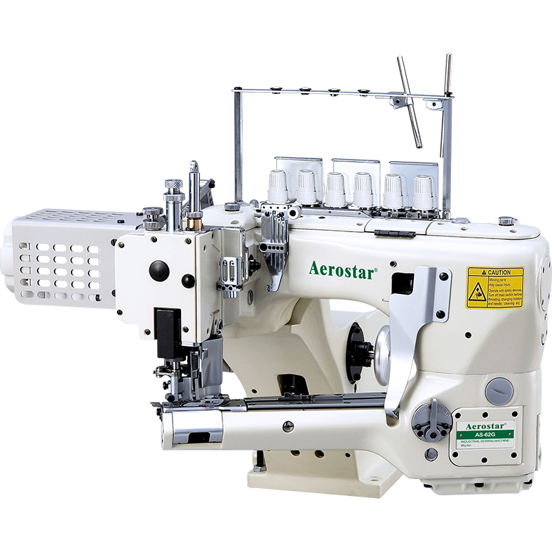 Direct drive 4 needle 6 thread feed off arm ,flat seam single edge cutter . Applicable to two pieces fabric for flat seaming the underwear and fienforce the join place . For example, the flat seaming on cross lap mens underpants bottom the taping for rienforcing the chemise, the flat seaming different color fabric...etc .