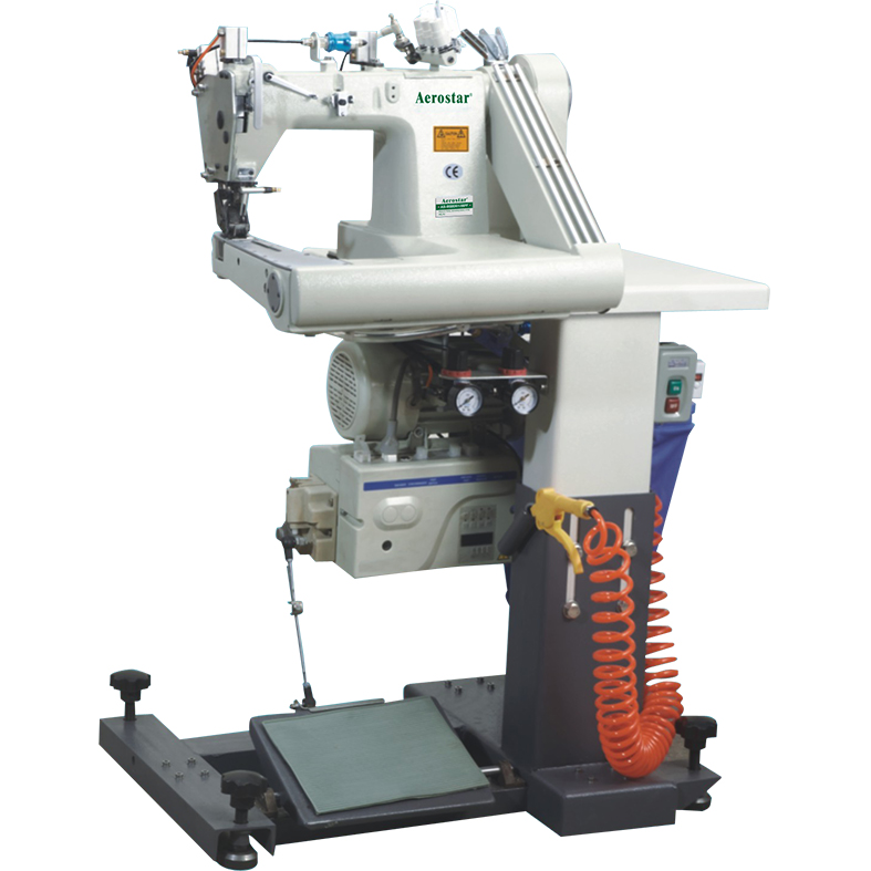 Small cylinder bed covering stich machine with thread trimmer. Adjustable hemming folder. It is silent and sensitive.